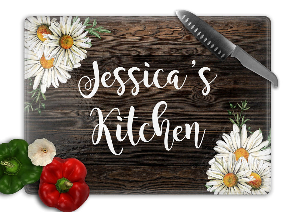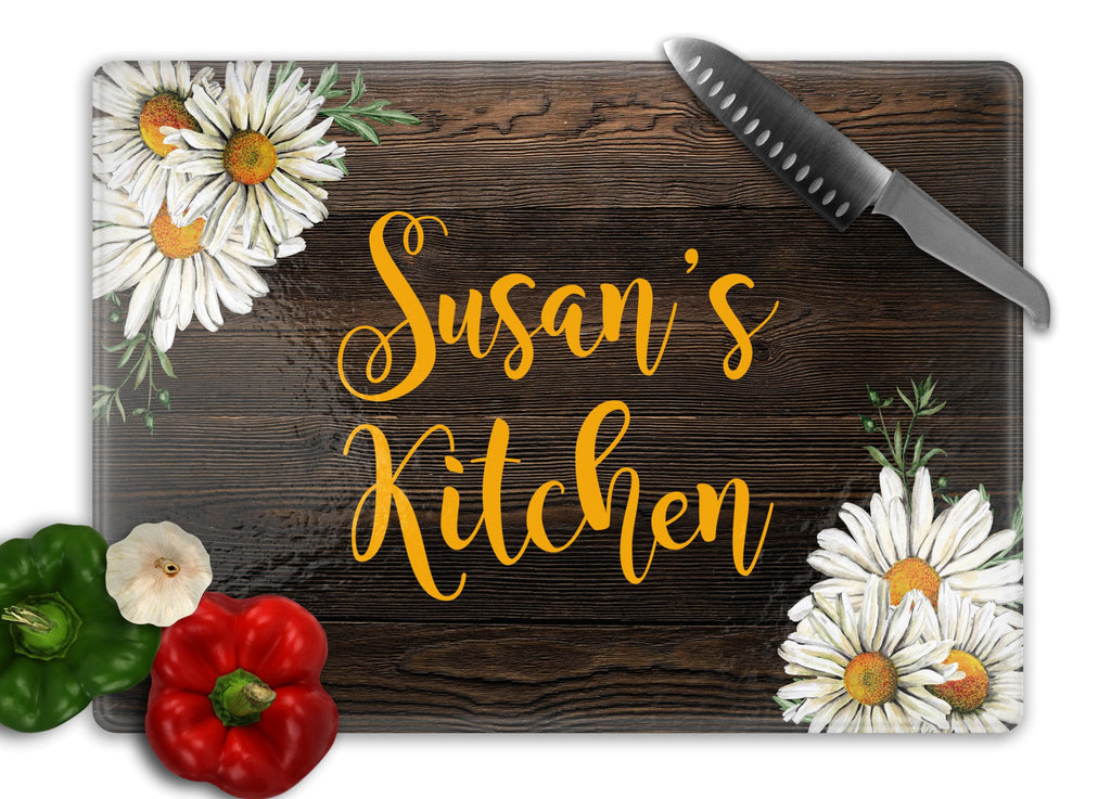 Dress up your kitchen countertop with a personalized glass cutting board that doubles as a serving board for fruit, cheese, and more! Our custom personalized glass cutting boards are a wonderful addition to any kitchen's decor or as a serving centerpiece. Give one to your child's favorite teacher, as a housewarming gift for a friend, a wedding gift or get one for yourself! wedding Cutting Gift, Housewarming Custom, Cutting Board Custom, Sunflowers, Sunflower Wedding, Sunflower Monogram, Sunflower Bridal, Unique Gift Idea, Engagement Gift Idea, Personalized Gift, Mr and Mrs Shower, Unique Gift for Mom, Gift to My Sister